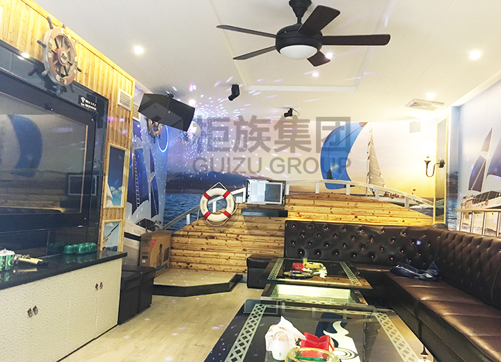 外觀弧形線條很好的搭配了音樂元素,凸顯集裝箱個性化設(shè)計特點。內(nèi)部唱歌、休閑設(shè)施齊全。